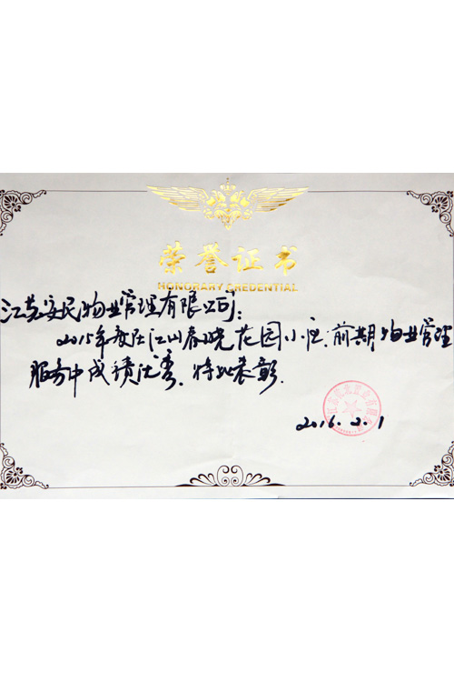 - 五星級(jí)服務(wù)小區(qū)(2015年12月)