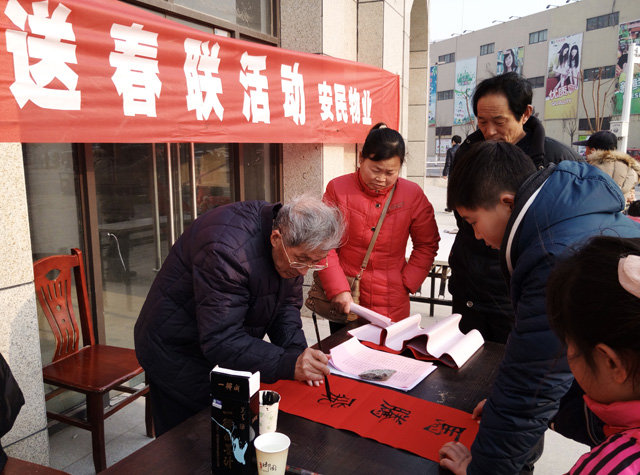 “過(guò)大年,貼春聯(lián)”是中華民族一直延續(xù)的表達(dá)人們向往美好生活的傳統(tǒng)文化,為弘揚(yáng)這一傳統(tǒng)文化,豐富群眾的文化生活,積極營(yíng)造歡樂(lè)、喜慶、文明、和諧的節(jié)日文化氛圍。在春節(jié)來(lái)臨之際,安民物業(yè)邀請(qǐng)宿遷書(shū)法名家等人進(jìn)社區(qū)開(kāi)展“迎新春、寫(xiě)對(duì)聯(lián)、送祝!奔t紅火火過(guò)大年活動(dòng)。
