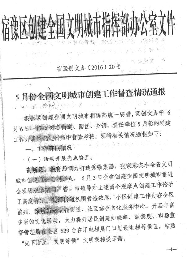 錦華御園小區(qū)5月份全國文明城市創(chuàng)建衛(wèi)生檢查中榮獲宿豫區(qū)居民小區(qū)考核第一名,并獲得獎勵金